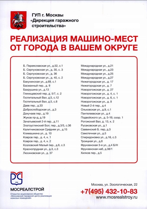 Адресный перечень объектов гаражного назначения, реализуемых отдельными машино-местами- скачать.